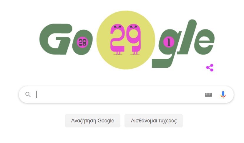 Στην 29η Φεβρουαρίου είναι αφιερωμένο το σημερινό Doodle της Google. Το 2020 είναι δίσεκτο έτος, με τον Φεβρουάριο να έχει μία ημέρα παραπάνω, κάτι που συμβαίνει κάθε τέσσερα χρόνια.«Δίσεκτο» ονομάζεται το έτος που αριθμεί 366 ημέρες. Επίσης στα δίσεκτα έτη κατά παράδοση διοργανώνεται η πιο σημαντική παγκόσμια αθλητική συνάντηση: οι Ολυμπιακοί αγώνες οι οποίοι αυτή τη φορά θα γίνουν στο Τόκιο (24 Ιουλίου – 9 Αυγούστου 2020).Δείτε το σημερινό Doodle της Google: