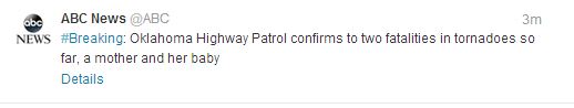 Το ABC News ανέβασε στο Twitter την επιβεβαίωση της θλιβερής είδησης απο την Αστυνομία Εθνικών Οδών της Οκλαχόμα.