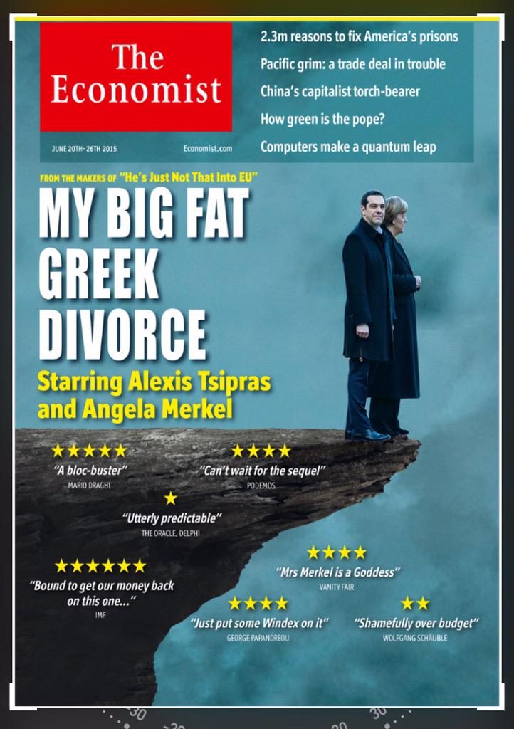 Τη γνωστή ταινία «Γάμος αλά Ελληνικά» προσαρμοσμένη στις ραγδαίες πολιτικές εξελίξεις με τον τίτλο «Διαζύγιο αλά… Ελληνικά», φιλοξενεί ο Economist, με πρόσωπα τον πρωθυπουργό Αλέξη Τσίπρα και την καγκελάριο Μέρκελ.