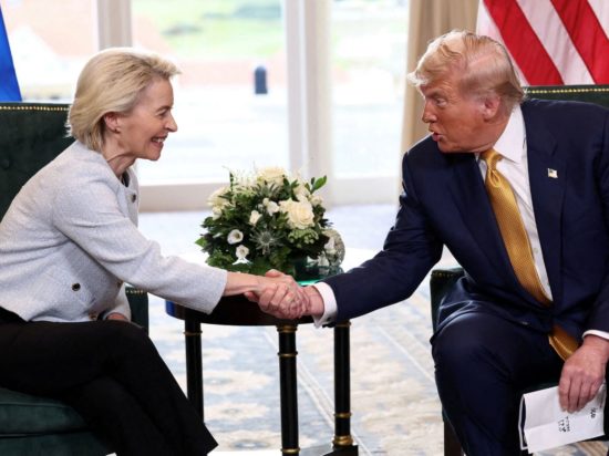 Δεν υπάρχει καμία αμφιβολία ότι η Ούρσουλα φον ντερ Λάιεν βρισκόταν υπό έντονη πίεση την Κυριακή, όταν κάθισε δίπλα στον Ντόναλντ Τραμπ στην αίθουσα χορού του γηπέδου γκολφ του στο Τέρνμπερι. Aξιωματούχοι της ΕΕ ήξεραν ότι θα ήταν ένας εξαντλητικός γύρος εμπορικών διαπραγματεύσεων.