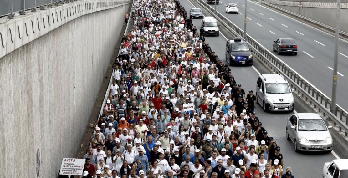Η «Πορεία για τη Δικαιοσύνη», που ξεκίνησε την 15η Ιουνίου από την Άγκυρα και στην οποία ηγείται το κόμμα της αξιωματικής αντιπολίτευσης της Τουρκίας για να διαμαρτυρηθεί για την φυλάκιση ενός βουλευτή του, έφθασε σήμερα στην Κωνσταντινούπολη.
