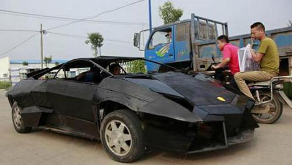 Ο 28χρονος Κινέζος αγρότης Wang Jian κατάφερε να κατασκευάσει μόνος του το αξίας 1,6 εκατομμυρίων δολαρίων μοντέλο Reventon της Lamborghini, συναρμολογώντας ανταλλακτικά από μεταχειρισμένο φορτηγάκι Nissan…Του πήρε συνολικά δέκα χρόνια, αλλά το αποτέλεσμα, τον κάνει σίγουρα πολύ περήφανο αφού ο…”Φρανκενστάιν” του πιάνει άνετα τα 160 μίλια την ώρα…
