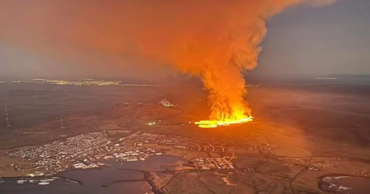 🚨𝗛𝗔𝗣𝗣𝗘𝗡𝗜𝗡𝗚 𝗡𝗢𝗪 – WATCH as some of the first houses in Grindavík Iceland are consumed by molten lava pouring from the recently formed volcanic fissure.