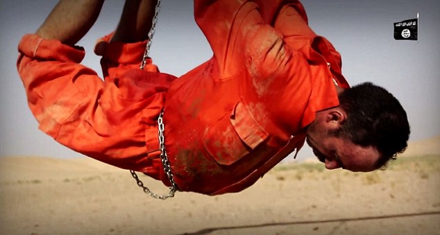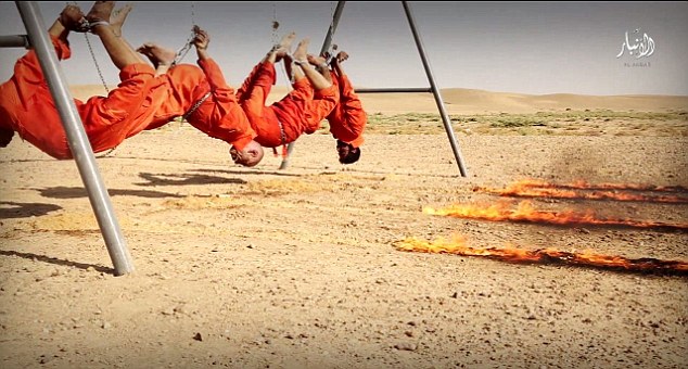 Οι τέσσερις άνδρες, οι οποίοι ήταν μέλη των δυνάμεων της Λαϊκής Κινητοποίησης που πολεμά τους τζιχαντιστές στο Ιράκ, κρεμάστηκαν με δεμένα τα χέρια και τα πόδια από ένα δοκάρι προτού καούν, σύμφωνα με το βίντεο.