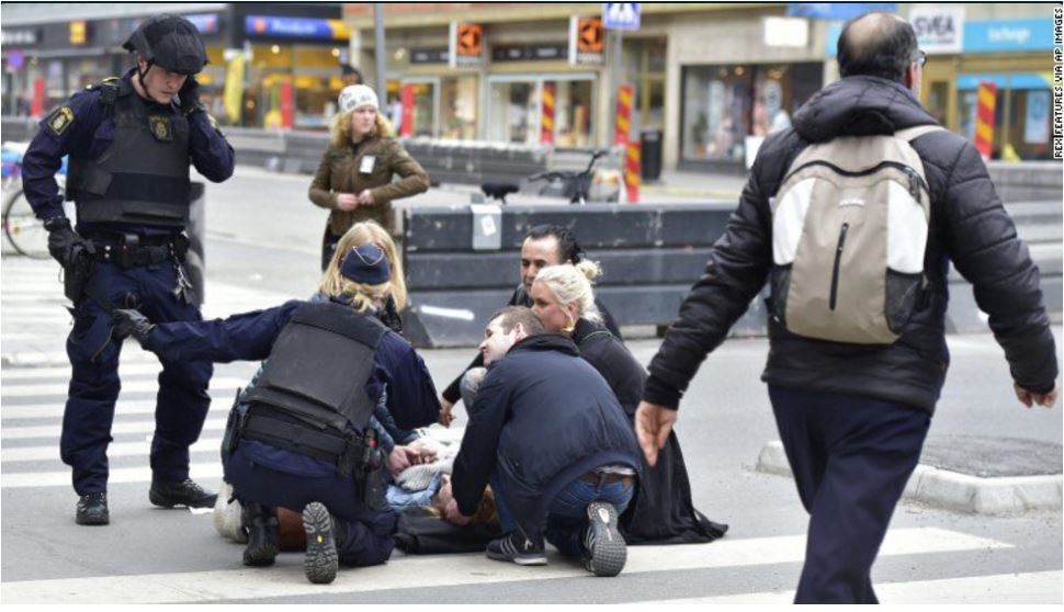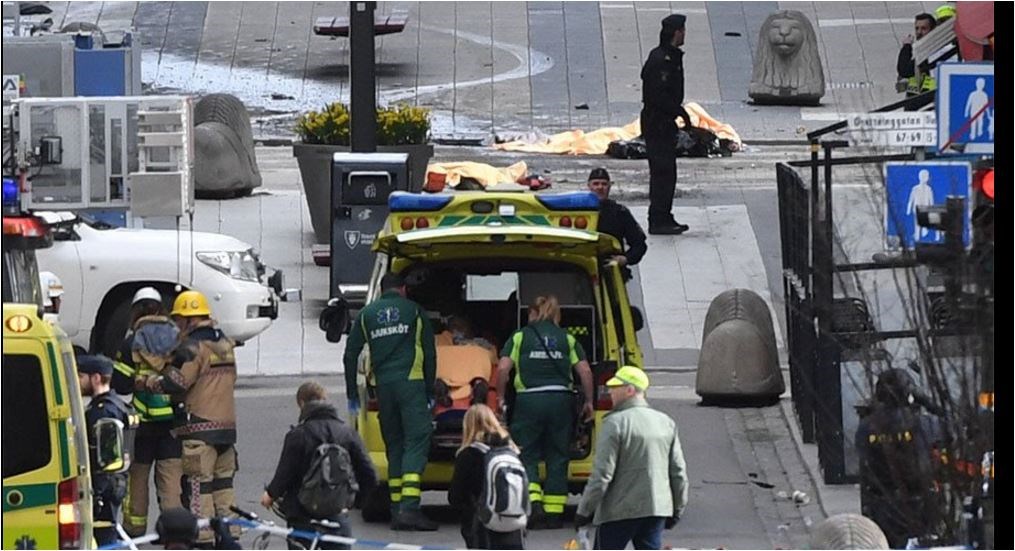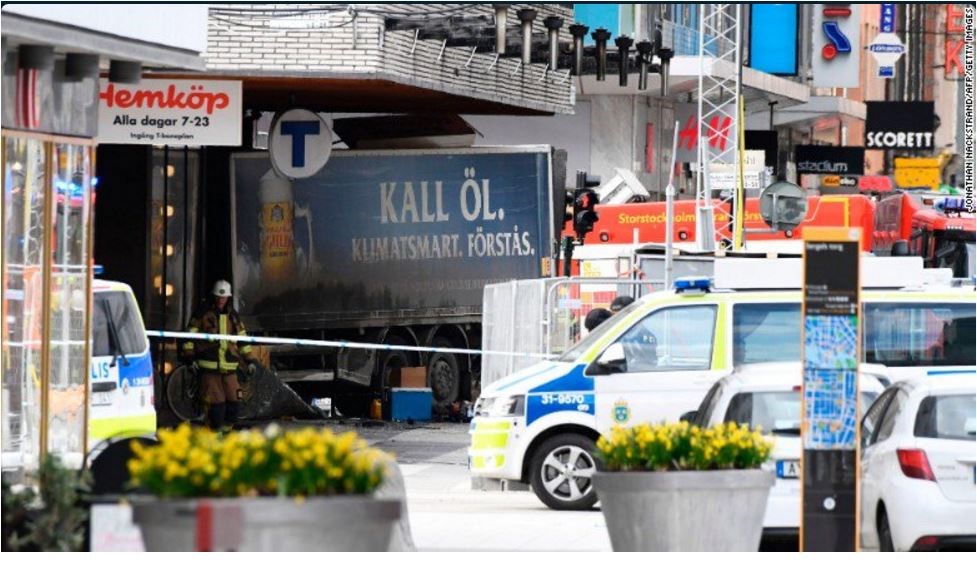 Συγκλονίζουν οι εικόνες μετά την επίθεση στο κέντρο της Στοκχόλμης, όταν ένα φορτηγό έπεσε πάνω σε πλήθος κόσμου και σκόρπισε τον θάνατο.Οι σουηδικές αρχές κάνουν λόγο για τρομοκρατικό χτύπημα, ενώ οι νεκροί μέχρι αυτή την ώρα ανέρχονται στους πέντε.Σύμφωνα με πληροφορίες, το φορτηγό εκλάπη σήμερα το πρωί μπροστά από γνωστό εστιατόριο της σουηδικής πρωτεύουσας. Οι αρχές έχουν εξαπολύσει ανθρωποκυνηγητό για τον εντοπισμό του δράστη.Δείτε τις φωτογραφίες: