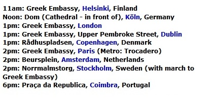 Στις 18 Φεβρουαρίου θα πραγματοποιηθεί Παγκόσμια Διαδήλωση σε πολλές Ευρωπαϊκές χώρε για Αλληλεγγύη προς τους Έλληνες.«Είμαστε όλοι Έλληνες! Όταν ένας λαός δέχεται επίθεση, την δέχονται όλοι οι άνθρωποι!», γράφουνε στην εγκύκλιο διαμαρτυρίας τους τονίζοντας ότι «Οι άνθρωποι στην Ελλάδα χρειάζονται την αλληλεγγύη όλων μας και ζητούν την υποστήριξή μας. Ας απαντήσουμε στο κάλεσμα τους. Είμαστε όλοι Έλληνες!».«Αρνούμαστε να θυσιάσουμε τους ανθρώπους με τα χρήματα, όπως κάνουν οι Έλληνες. Ας ανακτήσουμε πάλι τα ηνία της ζωής μας. Απενεργοποιήστε τον υπολογιστή σας, ενταχθείτε στην κινητοποίηση!»Προς το παρόν συνολικά έχουν προγραμματιστεί δώδεκα διαδηλώσεις στη Γαλλία και πάρα πολλές άλλες διαμαρτυρίες στην Πορτογαλία και σε ολόκληρη την Γερμανία.Για την Ελλάδα αναφέρουν ότι «φαίνεται να υπάρχουν σχέδια για διαμαρτυρίες σε “κάθε πλατεία, κάθε πόλη” στις 5 μ.μ. το Σάββατο και την Κυριακή».Ενώ σημειώνουν ότι «Υπάρχουν σημάδια της αλληλεγγύης για τις διαμαρτυρίες που διοργανώνονται σε παγκόσμιο επίπεδο και στην Νέα Υόρκη και στην Αυστραλία», ωστόσο τονίζουν ότι πρέπει να επιβεβαιωθεί και ότι θα μας ενημερώσουνε πιο μετά.