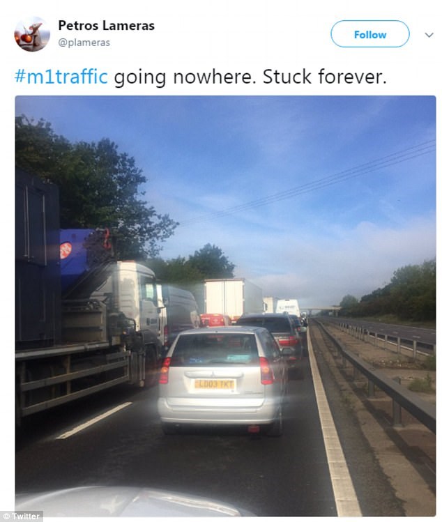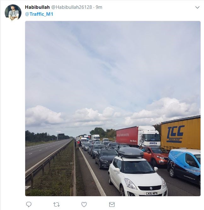 Φωτογραφίες στα μέσα κοινωνικής δικτύωσης εικονίζουν μεγάλες ουρές στον αυτοκινητόδρομο, ο οποίος αποτελεί μια από τις κύριες οδικές αρτηρίες της Βρετανίας ανάμεσα στο Λονδίνο και τον βορρά.