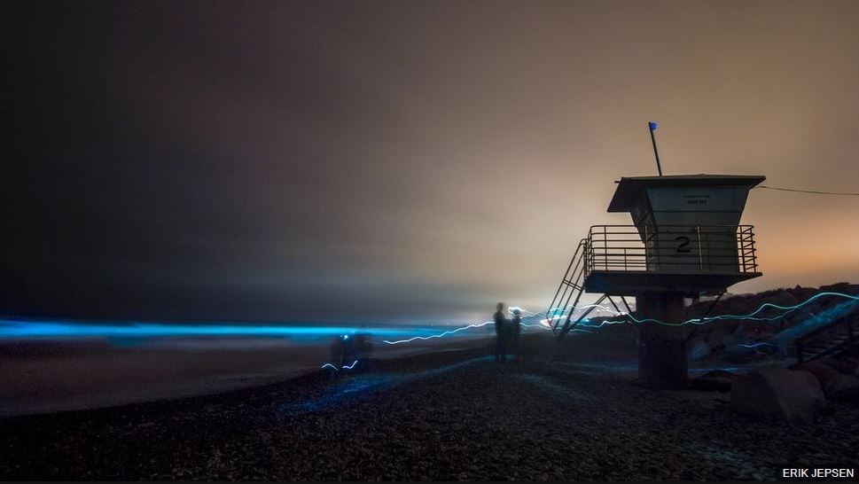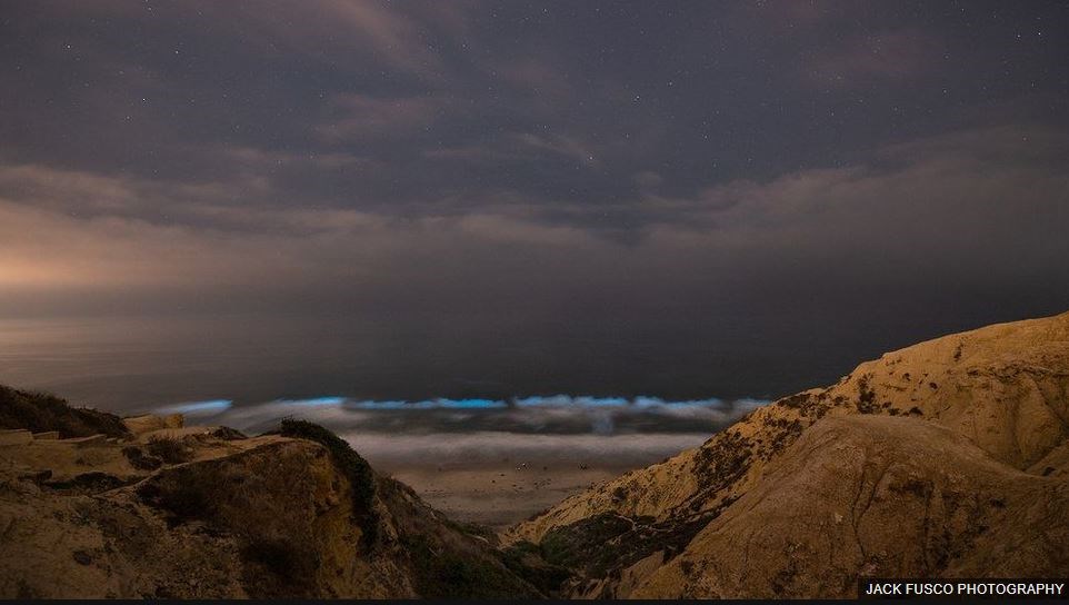Πρόκειται για μια πυκνή άνθιση φυκιών βιολογικής φωτεινότητας στα ανοικτά των ακτών της νότιας Καλιφόρνιας που έχει φωτίσει τον Ειρηνικό Ωκεανό με μια απόκοσμη και φανταστική γαλάζια λάμψη, στέλνοντας φωτογράφους και θεατές στην παραλία τη νύχτα με την ελπίδα να παρακολουθήσουν το φυσικό αυτό φαινόμενο.