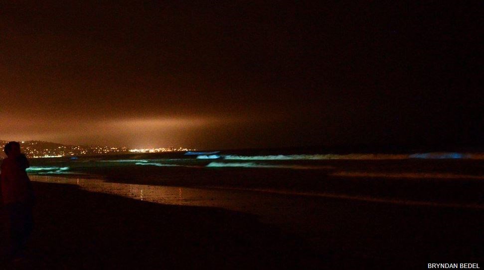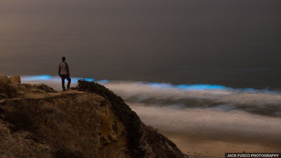 Πρόκειται για μια πυκνή άνθιση φυκιών βιολογικής φωτεινότητας στα ανοικτά των ακτών της νότιας Καλιφόρνιας που έχει φωτίσει τον Ειρηνικό Ωκεανό με μια απόκοσμη και φανταστική γαλάζια λάμψη, στέλνοντας φωτογράφους και θεατές στην παραλία τη νύχτα με την ελπίδα να παρακολουθήσουν το φυσικό αυτό φαινόμενο.