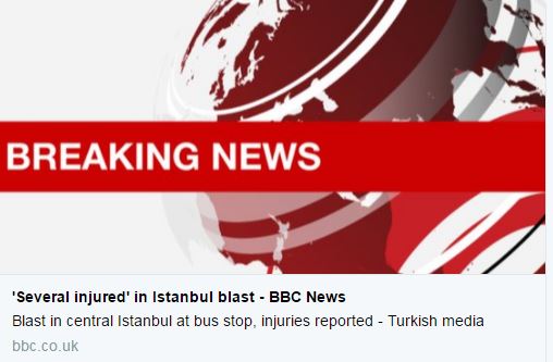 Ισχυρή έκρηξη σε στάση λεωφορείου στην Κωνσταντινούπολη. Σύμφωνα με τις πρώτες πληροφορίες που μεταδίδει το BBC υπάρχουν αναφορές για τραυματίες. Αυτή την ώρα, ακούγονται πυροβολισμοί, ενώ ήδη βρίσκονται ασθενοφόρα στο σημείο.