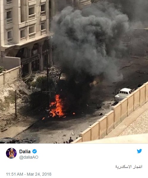 Η έκρηξη προκλήθηκε από παγιδευμένο αυτοκίνητο, που είχε ως στόχο τον επικεφαλής ασφαλείας στην Αλεξάνδρεια, σύμφωνα με τρεις πηγές ασφαλείας.