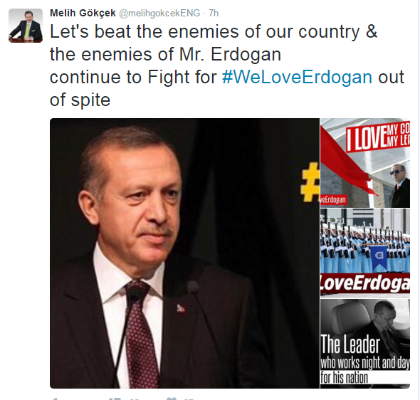 Οι οπαδοί του Τούρκου Προέδρου Ρετζέπ Ταγίπ Ερντογάν δημιούργησαν στο Twitter το hashtag, #WeLoveErdogan, προκειμένου να τον υπερασπιστούν.