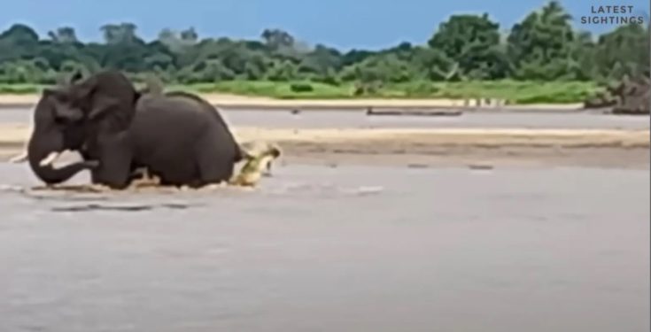 Το κολοσσιαίο ζώο κολυμπούσε στα ρηχά νερά του ποταμού Luangwa στη δυτική Ζάμπια, όταν ο κροκόδειλος άρπαξε την ουρά του. Τότε ο ελέφαντας έτρεξε μανιωδώς προς την ξηρά, αλλά σταμάτησε κοντά στην ακτογραμμή όταν συνειδητοποίησε ότι ο κροκόδειλος δεν επρόκειτο να εγκαταλείψει τόσο εύκολα ένα πιθανό γεύμα.