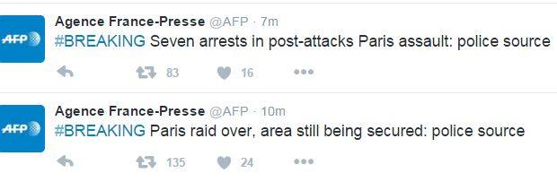 Επτά ώρες μετά την έναρξή της, η μεγάλη αντιτρομοκρατική επιχείρηση τερματίσθηκε στην πόλη του Σεν Ντενί, βόρεια του Παρισιού.