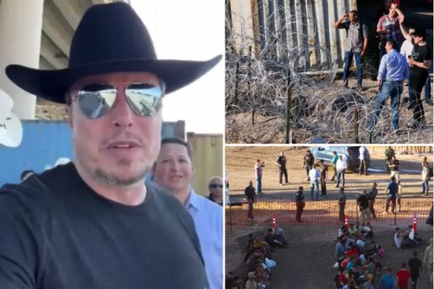 Ο Μασκ επισκέφθηκε το Ιγκλ Πας, όπου εκατοντάδες μετανάστες διασχίζουν τον ποταμό Ρίο Γκράντε κοντά στη σιδηροδρομική γέφυρα του Ιγκλ Πας, αψηφώντας το συρματόπλεγμα που έχει τοποθετηθεί κατά μήκος των όχθεων του ποταμού από την Εθνοφρουρά του Τέξας.