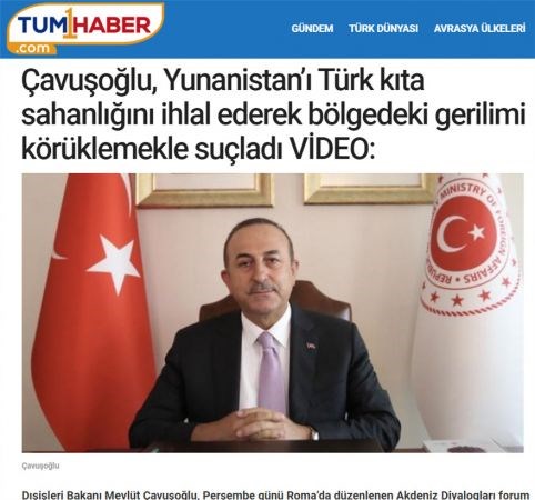 Δεν περνά μέρα χωρίς κάποια προκλητική ή εμπρηστική δήλωση από τον Τούρκο υπουργό Εξωτερικών, Μεβλούτ Τσαβούσογλου. Μιλώντας, μέσω τηλεδιάσκεψης, σε φόρουμ που διοργανώθηκε στην Ιταλία για τον «Διάλογο στη Μεσόγειο», ο Τσαβούσογλου κατηγόρησε προκλητικά και ψευδώς την Ελλάδα πως πυροδότησε εντάσεις στην περιοχή «παραβιάζοντας» την υποτιθέμενη τουρκική υφαλοκρηπίδα. Τα πυρά του στράφηκαν και κατά της Κύπρου, κατηγορώντας την πως αγνοεί προκλητικά τα συμφέροντα των Τουρκοκυπρίων και της Τουρκίας στην περιοχή.
