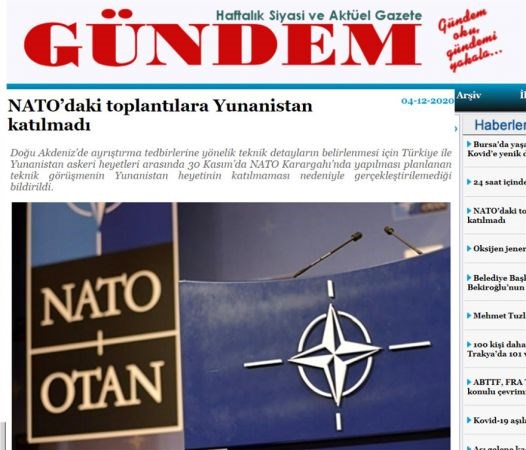 «Η Ελλάδα δεν παραβρίσκεται στις συναντήσεις του ΝΑΤΟ» είναι ο τίτλος του ρεπορτάζ της τουρκικής εφημερίδας που στη συνέχεια αναφέρεται στο ιστορικό των συναντήσεων τεχνικών αντιπροσωπειών των δύο χωρών, στο πλαίσιο της Ευρωατλαντικής Συμμαχίας, κατηγορώντας τη χώρα μας για «ναυάγιο» των συνομιλιών.