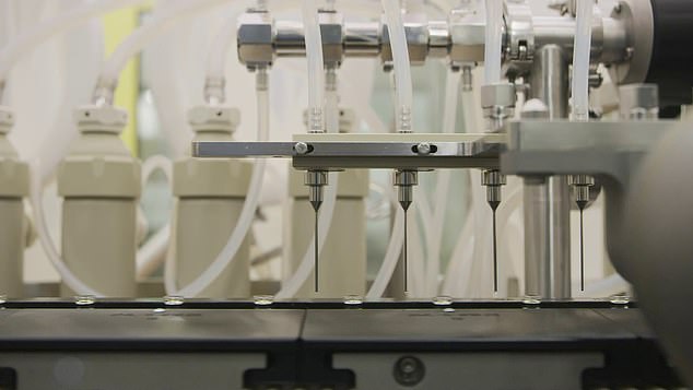 1: Κώδικας-κλειδί: Ο συνθετικός γενετικός κώδικας που προτρέπει τον οργανισμό να δημιουργήσει την πρωτεΐνη-ακίδα του ιού – και έτσι να αποκρούσει τον ιό- παράγεται στις εγκαταστάσεις της BioNTech στο Μάιντς της Γερμανίας.