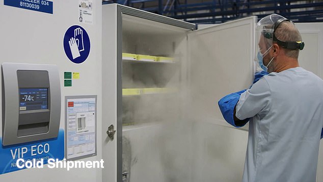 Τόνοι πάγου διατηρούν τις δόσεις στους -75C και οι θερμικοί αισθητήρες θα παρακολουθούν τη θερμοκρασία αυτού του πολύτιμου φορτίου καθώς αποστέλλεται σε όλο τον κόσμο. Το εμβόλιο μπορεί να διατηρηθεί σε θερμοκρασία ψυγείου – αλλά μόνο για πέντε ημέρες. Ήταν τόσο επείγουσα η κατάσταση με την πανδημία, που η Pfizer, από κοινού με άλλες φαρμακευτικές εταιρείες, άρχισε να παράγει δόσεις ακόμη και προτού υπάρξουν στοιχεία ότι το εμβόλιο θα ήταν αποτελεσματικό. Έτσι, εκατοντάδες χιλιάδες δόσεις έχουν ήδη δημιουργηθεί από το τέλος του καλοκαιριού στο Πουρς του Βελγίου, που θα κυκλοφορήσουν στην Ευρώπη, με την πόλη Καλαμαζού στο Μίσιγκαν να αναλαμβάνει την τροφοδοσία των ΗΠΑ.