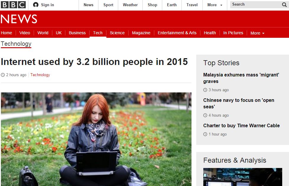 Περίπου 3,2 δισεκατομμύρια άνθρωποι, σχεδόν ο μισός πληθυσμός του πλανήτη μας, που υπολογίζεται στα 7,2 δισεκατομμύρια, θα χρησιμοποιούν το Διαδίκτυο έως το τέλος του 2015. Αυτό προβλέπει μια νέα έκθεση της Διεθνούς Ένωσης Τηλεπικοινωνιών (ITU), σύμφωνα με το BBC.