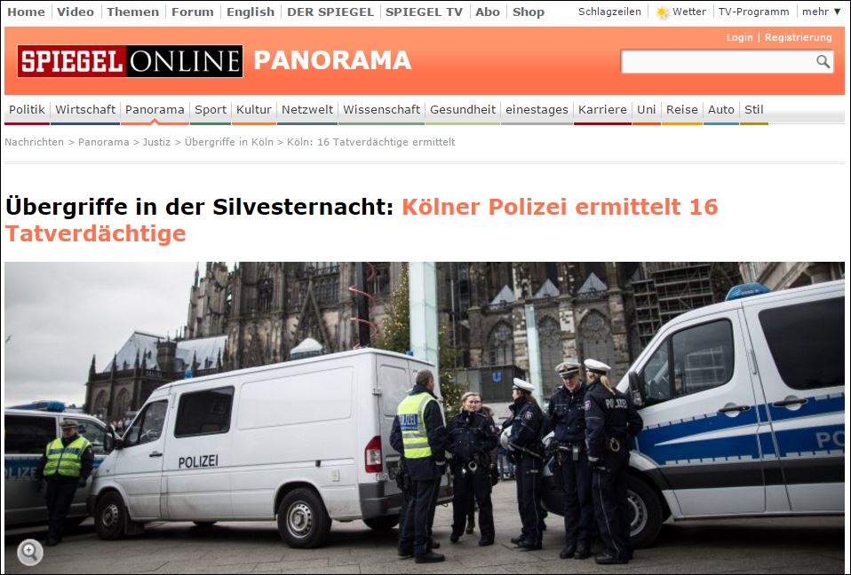 Η γερμανική αστυνομία ανακοίνωσε σήμερα ότι έχει εντοπίσει “δεκαέξι υπόπτους”, ενώ 121 μηνύσεις έχουν υποβληθεί μετά τις δεκάδες επιθέσεις εναντίον γυναικών που σημειώθηκαν τη νύχτα της παραμονής της Πρωτοχρονιάς στην Κολωνία (δυτική Γερμανία) και συγκλόνισαν βαθιά τη Γερμανία.