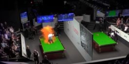 Just Stop Oil protester Edred Whittingham, a 25-year-old Politics, Philosophy and Economics student at Exeter University, tossed orange paint over a snooker table during the World Championship before being dragged away.