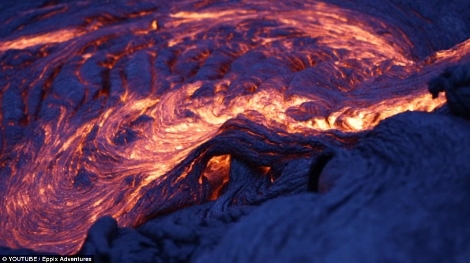 Στο βίντεο βλέπουμε την μπλε λάβα, να ρέει προς το νησί που βρίσκεται έξω από το ηφαίστειο Kilauea, το οποίο δημιουργήθηκε πριν από 300,000-600,000 χρόνια.