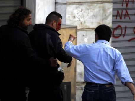 “Αιματηρά επειδόδια μετά την κηδεία” είναι ο τίτλος δημοσιεύματος της Bild που αναφέρεται στις χθεσινές διαμαρτυρίες στο κέντρο της Αθήνας, μετά την κηδεία του Δημήτρη Χριστούλα.”Εκατοντάδες Έλληνες παρίσταντο χθες στην κηδεία του συνταξιούχου, προκειμένου να τιμήσουν τη μνήμη του” επισημαίνει η εφημερίδα. “Μετά την τελετή, οι συμπολίτες του συνταξιούχου πραγματοποίησαν πορεία στο κέντρο της Αθήνας διμαρτυρόμενοι ενάντια στην πολιτική λιτότητας της κυβέρνησης, που όπως υποστηρίζουν οδήγησε τον 77χρονο στην αυτοκτονία” γράφει η γερμανική εφημερίδα. “Οι συγκρούσεις που ακολούθησαν -μεταξύ διαδηλωτών και αστυνομικών- ήταν βίαιες, ενώ τραυματίστηκε και ένας αστυνομικός. Μετά τον τραυματισμό του, το μένος των διαμαρτυρόμενων ήταν τέτοιο, που του αφαίρεσαν το γιλέκο και τον ασύρματο, και τα εναπόθεσαν στο σημείο που αυτοκτόνησε ο συνταξιούχος.” αναφέρει η Bild. Δείτε τις φωτογραφίες: