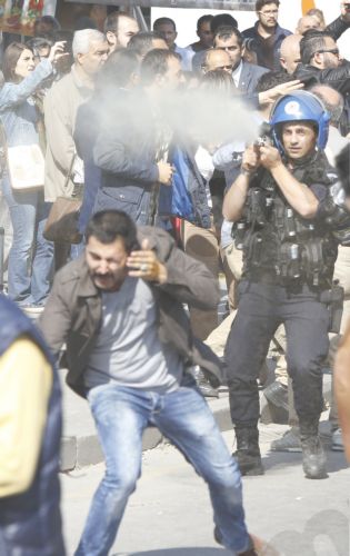 Εκατοντάδες άνθρωποι που κρατούσαν σημαίες εμποδίστηκαν επίσης από την αστυνομία με εξάρτυση κατά των διαδηλώσεων να συμμετάσχουν στη διαδήλωση, στην οποία θα έπαιρνε μέρος και ο ηγέτης του φιλοκουρδικού Κόμματος Δημοκρατίας των Λαών (HDP), Σελαχατίν Ντεμιρτάς.
