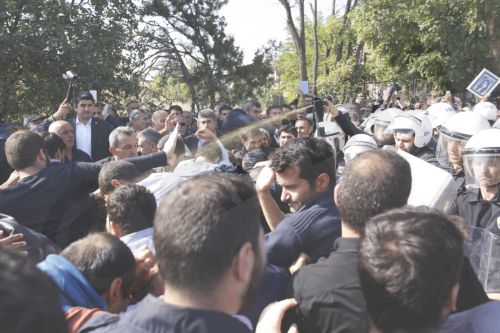 Την Κυριακή (χθες), στη διάρκεια μιας πρώτης συγκέντρωσης στην Μπούρσα (Προύσα – βορειοδυτική Τουρκία) στη μνήμη των θυμάτων της επίθεσης, ξέσπασαν συγκρούσεις ανάμεσα στην αστυνομία και στους διαδηλωτές.