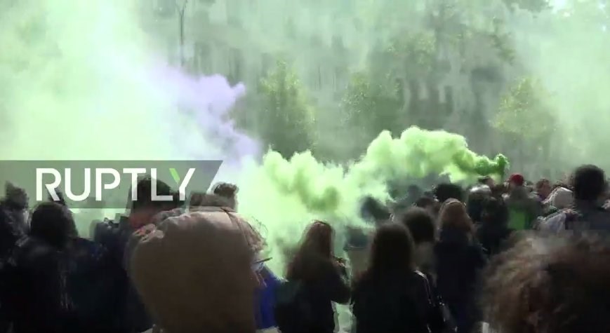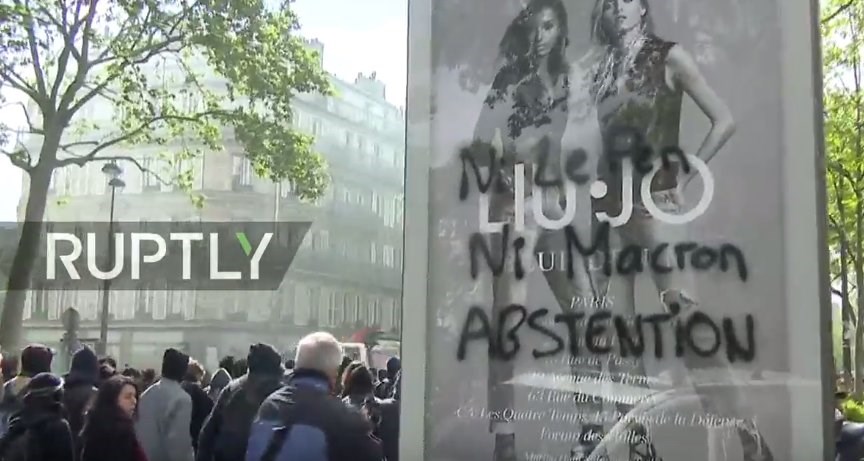 Protesters throw bottles at store fronts in rally against French presidential candidates #Presidentielle2017 https://t.co/p6XTVC6Up3 pic.twitter.com/AAzKSRa4cj