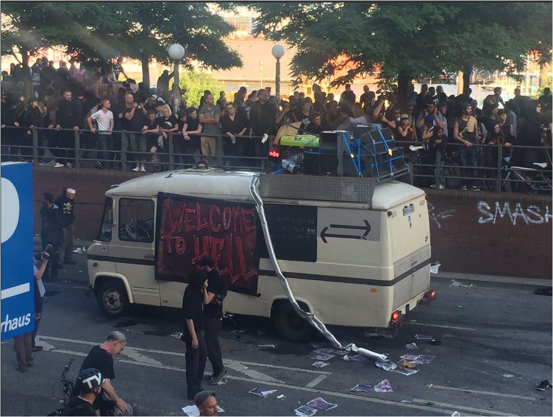 Συγκρούσεις ξέσπασαν κατά τη διάρκεια διαδηλώσεων εναντίον της Ομάδας των Είκοσι Κρατών με τις μεγαλύτερες οικονομίες (G20) και τις μονάδες αντιμετώπισης ταραχών της γερμανικής αστυνομίας στο κέντρο του Αμβούργου.Οι αστυνομικοί έκαναν χρήση δακρυγόνων και εκτοξευτήρων νερού υπό πίεση για να απωθήσει αρκετές εκατοντάδες αναρχικούς κουκουλοφόρους οι οποίοι εκτόξευαν αντικείμενα εναντίον τους.