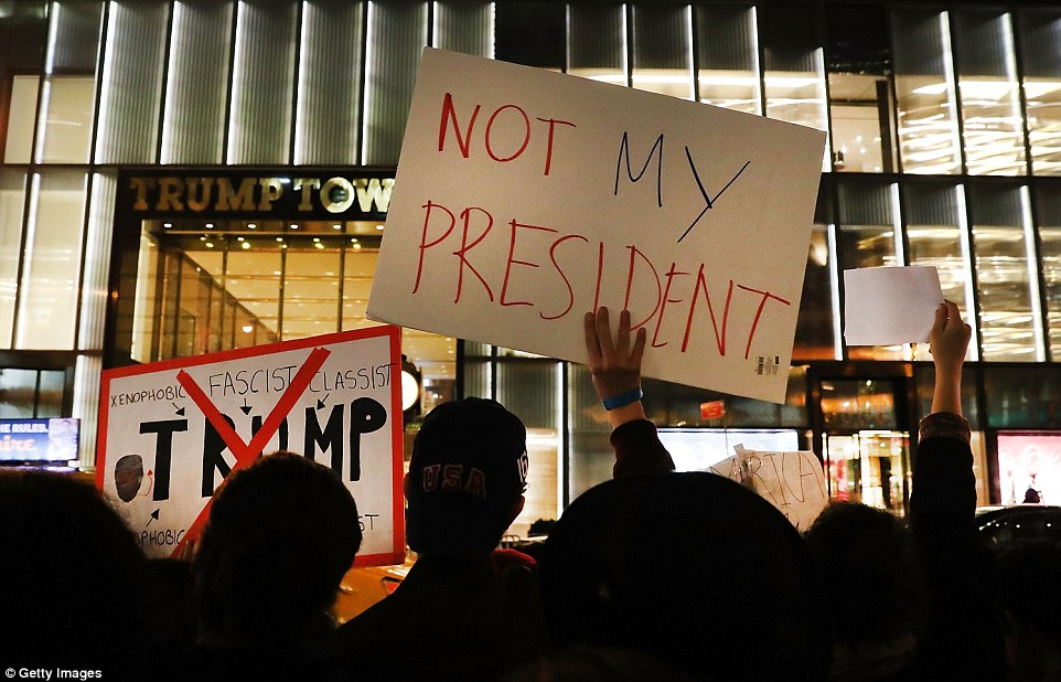 Από τη Νέα Υόρκη ως το Σικάγο και την Καλιφόρνια, εκατοντάδες διαδηλωτές βγήκαν στους δρόμους για να δηλώσουν τη δυσαρέσκεια τους για το εκλογικό αποτέλεσμα.