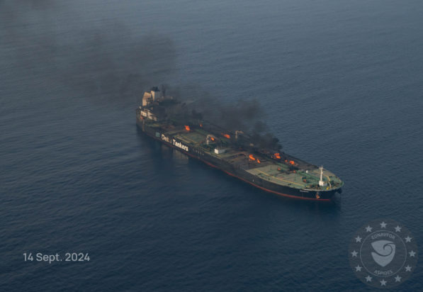 Το ελληνόκτητο πλοίο MV Sounion ρυμουλκήθηκε σε ασφαλή περιοχή, υπό την προστασία της επιχείρησης «Aspides», χωρίς να υπάρξει η παραμικρή διαρροή πετρελαίου.