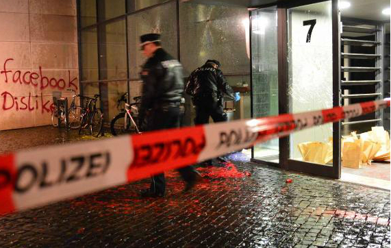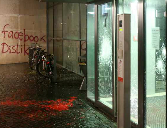 Στόχος βανδάλων έγιναν την Κυριακή τα γραφεία του Facebook στο Αμβούργο της Γερμανίας, όπου μια ομάδα αγνώστων επιτέθηκε σπάζοντας τζάμια, πετώντας μπογιές και γράφοντας στον τοίχο της εισόδου «Facebook dislike». Σύμφωνα με την γερμανική αστυνομία ήταν μια μάδα 10-15 ατόμων που φορούσαν μαύρα ρούχα και κουκούλες.
