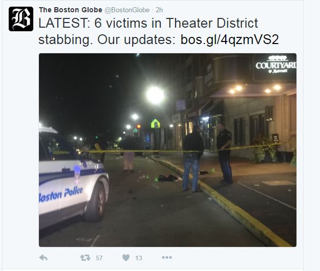 Έξι άνθρωποι έχουν τραυματιστεί από επίθεση με μαχαίρι στο Tremont Street, περιοχή κοντά σε κολλέγιο στη Βοστώνη.