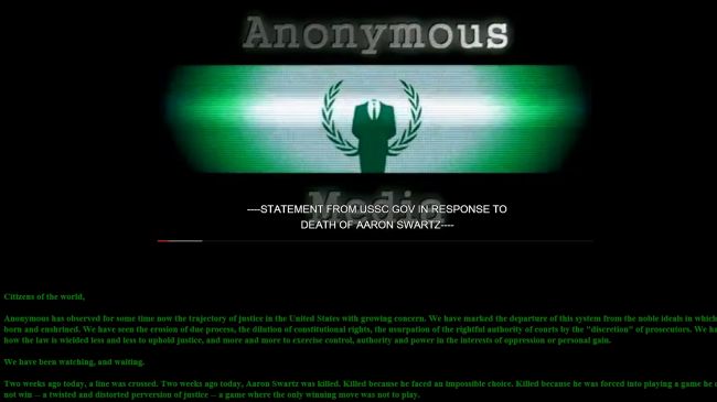 «Επίθεση» των Anonymous στη μνήμη του Σουόρτζ