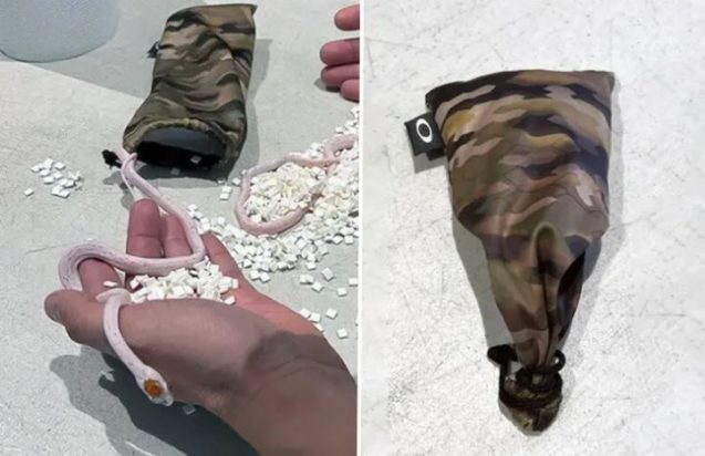 Ανακάλυψαν τα ερπετά κρυμμένα σε κάτι που φαινόταν να είναι μια τσάντα γυαλιών ηλίου, στο παντελόνι του επιβάτη σε ένα σημείο ελέγχου αεροδρομίου στις 26 Απριλίου, σύμφωνα με μια ανάρτηση στο X από τη Διοίκηση Ασφάλειας Μεταφορών. Η φωτογραφία των δύο μικρών φιδιών και η καμουφλαρισμένη τσάντα που βρίσκονταν, συμπεριλήφθηκε στην ανάρτηση.