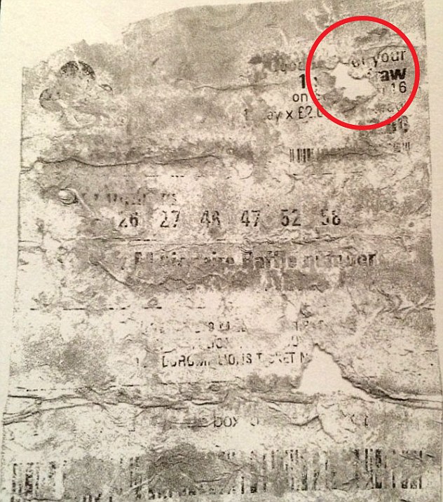 Η ίδια ισχυρίζεται ότι το τυχερό δελτίο πλύθηκε κατά λάθος μαζί με το τζιν για αυτό και είναι τόσο φθαρμένο.