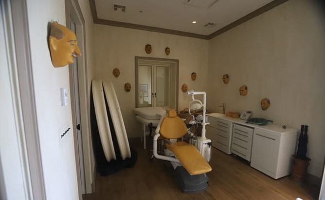 Δέκα φωτογραφίες και τέσσερα βίντεο έδειχναν το σπίτι του διασυρμένου χρηματοδότη, συμπεριλαμβανομένης της βιβλιοθήκης του με έναν πίνακα γεμάτο αινιγματικές λέξεις ενώ σε ένα δωμάτιο στο κέντρο του, υπάρχει μια οδοντιατρική καρέκλα και γύρω γύρω είναι κρεμασμένες στους τοίχους, τρομακτικές μάσκες ανδρικών μορφών.