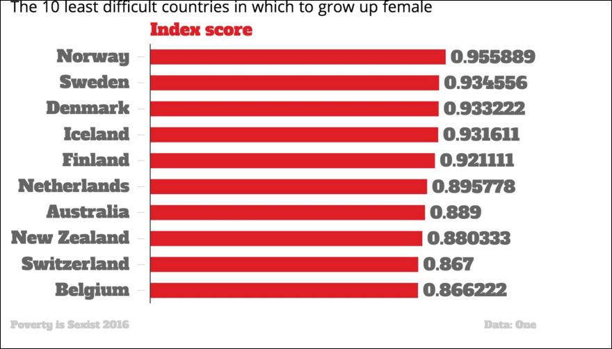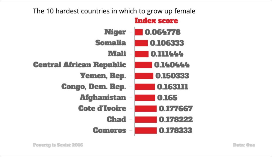Οι ερευνητές κατέληξαν στο συμπέρασμα ότι οι 20 χειρότερες χώρες για να γεννηθεί ένα κορίτσι, είναι οι γνωστές και ως “μη αναπτυσσόμενες χώρες”. Έτσι η Νιγηρία είναι η πιο “σκληρή” χώρα για τις νεαρές κυρίως κοπέλες και ακολουθούν η Σομαλία και το Μάλι.