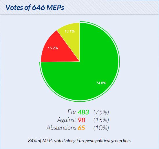 Το ψήφισμα, που εγκρίθηκε με 483 ψήφους υπέρ, 98 κατά και 65 αποχές.