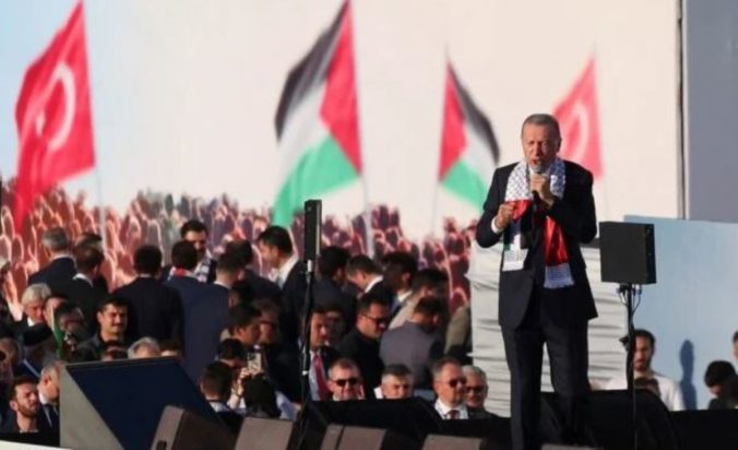 Türkiye’s President Recep Tayyip Erdogan addresses mass rally in Istanbul to show support for Palestinians: