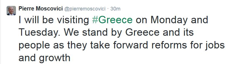 Είμαστε στο πλευρό της Ελλάδας και του λαού της καθώς προωθούν μεταρρυθμίσεις για την τόνωση της απασχόλησης και την ανάπτυξη, δηλώνει ο κοινοτικός επίτροπος.