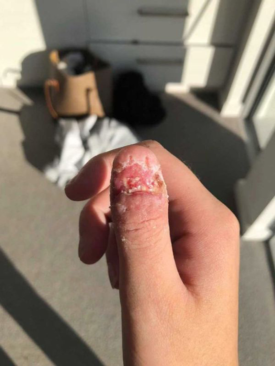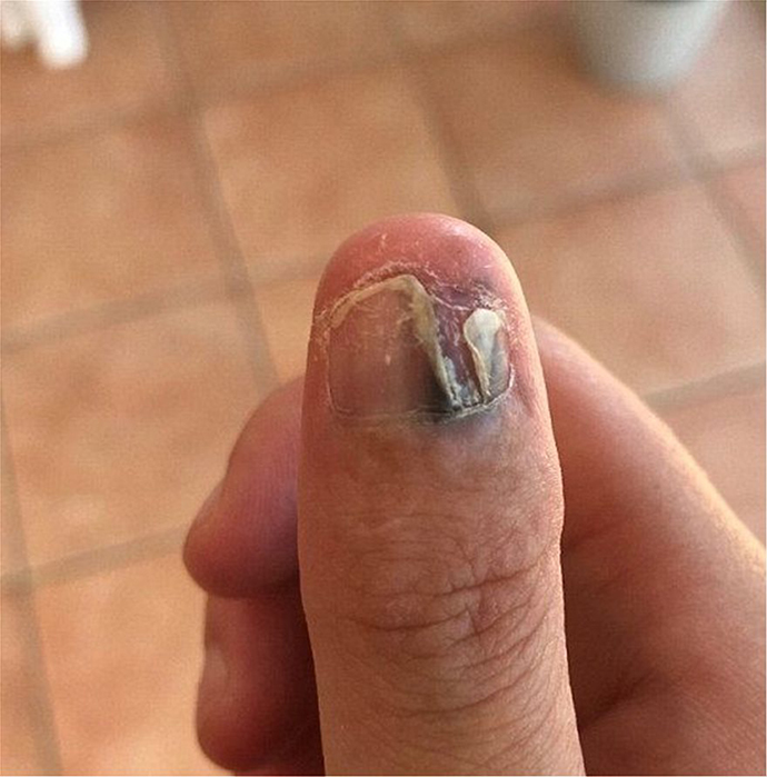 Η έφηβη αρχικά δεν ανησύχησε γιατί πίστευε ότι το νύχι της θα έβγαινε ξανά, ωστόσο μετά από μερικές εβδομάδες συνειδητοποίησε ότι το νύχι της δεν μεγάλωνε κανονικά, και ότι το δέρμα του αντίχειρά της είχε μαυρίσει.