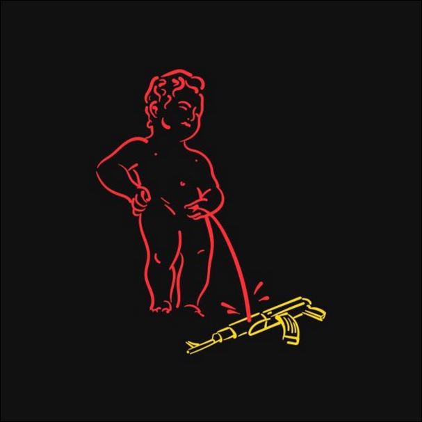 Συγκεκριμένα, το έργο τέχνης που αποτελεί σήμα κατατεθέν της βελγικής πρωτεύουσας, παρουσιάζεται να ουρεί τα Καλάσνικοφ, τα όπλα με τα οποία οι τζιχαντιστές έσπειραν το θάνατο στο Παρίσι και τα οποία βρέθηκαν στο αεροδρόμιο των Βρυξελλών.