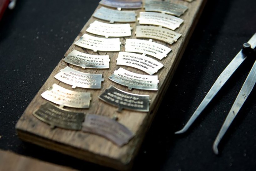 Στο αγαλματάκι που παραλαμβάνει ο εκάστοτε βραβευμένος, στη βάση του (την μπομπίνα φιλμ) δεν αναγράφεται τίποτα απολύτως. Η μικρή πλακέτα με το όνομα – την οποία επίσης κατασκευάζει η Polich Tallix – τοποθετείται μετά την τελετή βράβευσης.