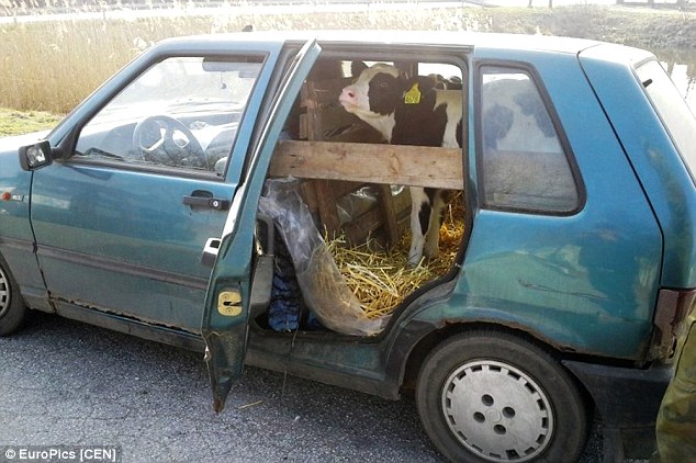 Μια έκπληξη περίμενε τους αστυνομικούς που πραγματοποίησαν έλεγχο στο αυτοκίνητο ενός 53χρονου αγρότη στην Πολωνία. Στο πίσω κάθισμα του αυτοκινήτου καθόταν μια νεαρή αγελάδα ενώ ο Ζμπίνιεφ Γκραμπόφσκι, οδηγός του αυτοκινήτου, είχε δημιουργήσει μια «μίνι φάρμα» με άχυρα και ξύλα για να μεταφέρει το ζώο του.