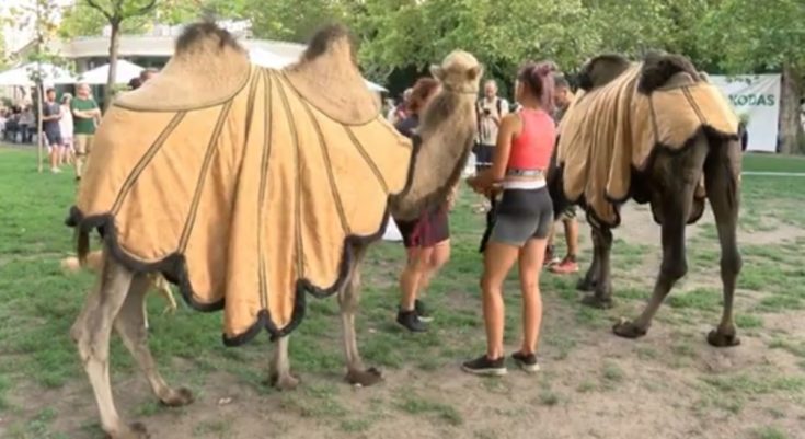 Ούγγροι οργάνωσαν ένα καραβάνι, το οποίο οδηγούσαν καμήλες, στη Βουδαπέστη προκειμένου να προειδοποιήσουν για την απερήμωση της χώρας της κεντρικής Ευρώπης και να ζητήσουν από τον πρωθυπουργό Βίκτορ Όρμπαν να λάβει μέτρα για την υπερθέρμανση του πλανήτη.