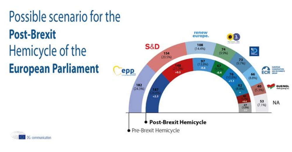 Από σήμερα 1η Φεβρουαρίου, ο αριθμός και η κατανομή των εδρών στο Κοινοβούλιο αλλάζει μετά την αποχώρηση του Ηνωμένου Βασιλείου από την ΕΕ.